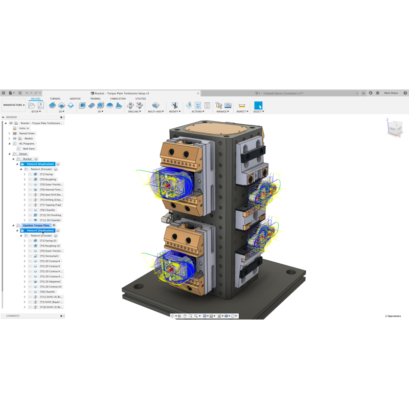 CAM (Компьютерное управление станками): Fusion 360 имеет мощные CAM функции, которые позволяют создавать маршруты обработки для CNC станков, автоматизируя процессы фрезерования, токарной обработки и других видов механической обработки.