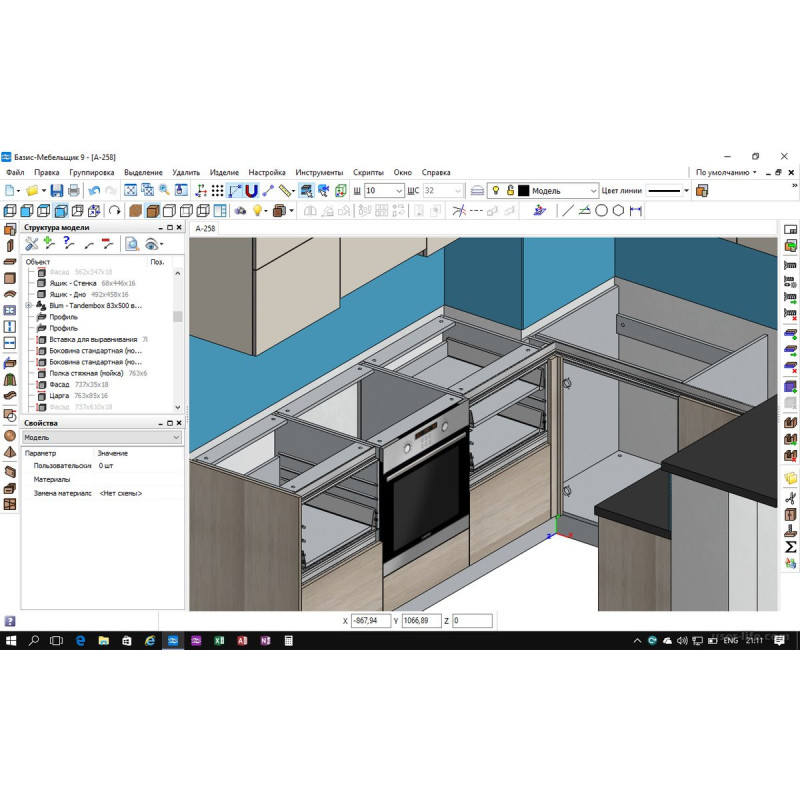 - Імпорт/експорт корпусів із програми Dynaplan у форматі bxf з відображенням фурнітури фірми BLUM.